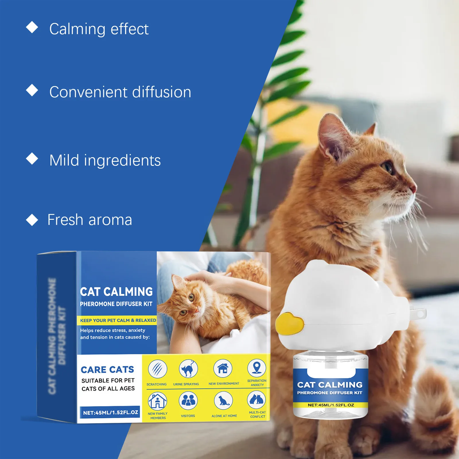 45ml Cat Calming Diffuser Set Pet Cat Estrus Irritability Calming Liquid Multiple Cats Conflict Scratching Mild Pet Supplies