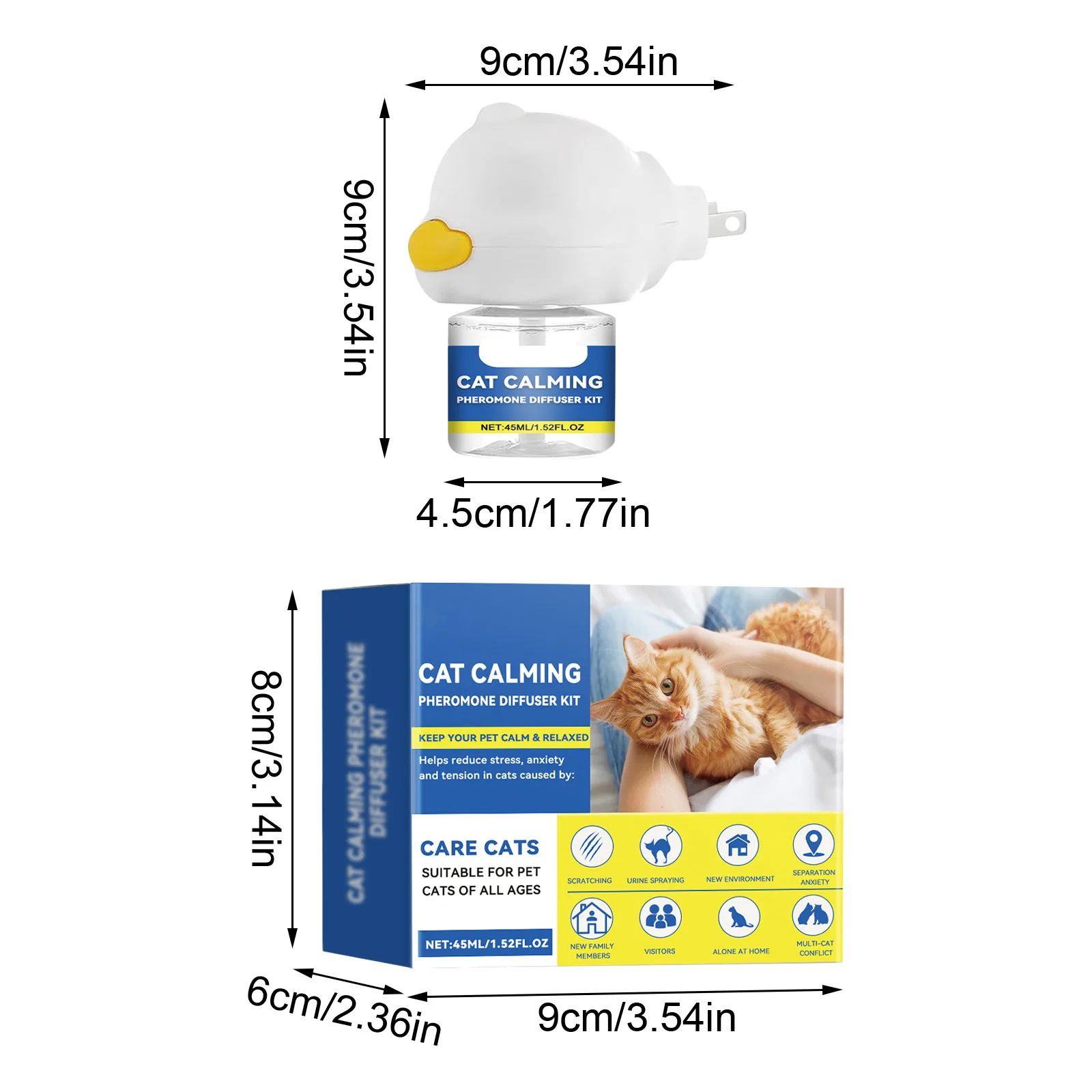 Cat Calming Pheromone Diffuser Kit: 45ML*1, Heater*1